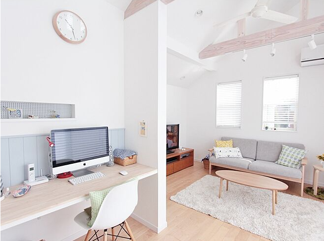 2. 거실의 일각을 움푹 들어가게 숨어 작업 공간 활용 (재택근무 공간)