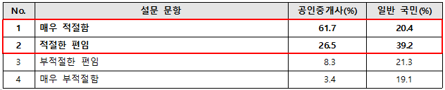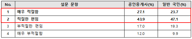 (공인중개사 45.8%, 일반국민 37.1%지지, 붙임 참조)