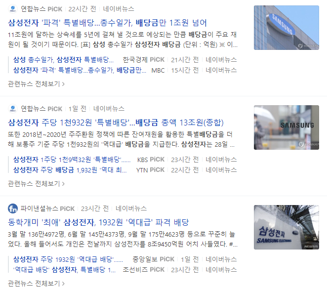 삼성전자는 2018~2020년 3년간 잉여현금흐름에 따라 10조7000억 원(주당 1578원)의 특별 배당을 지급한다고 합니다.