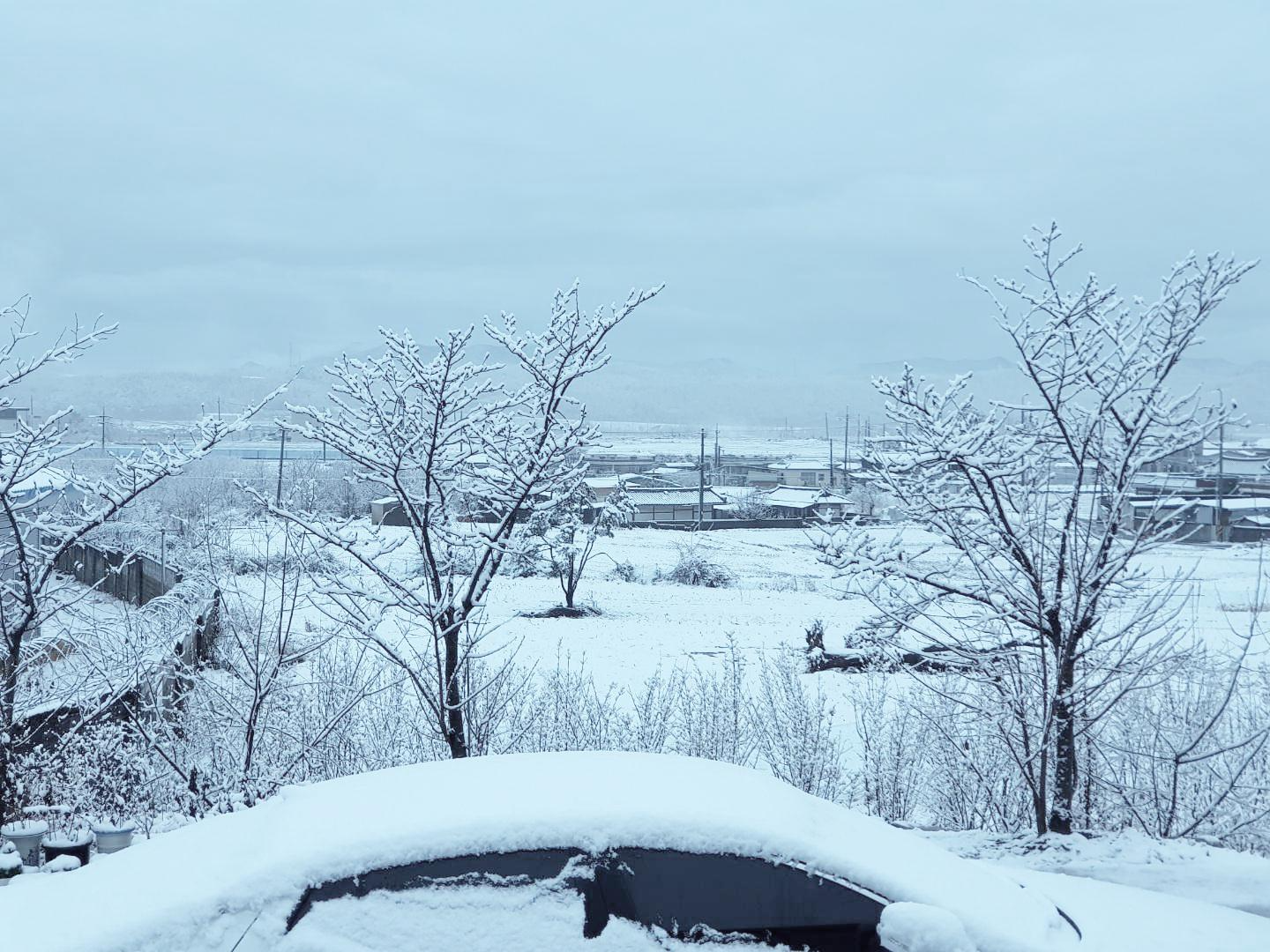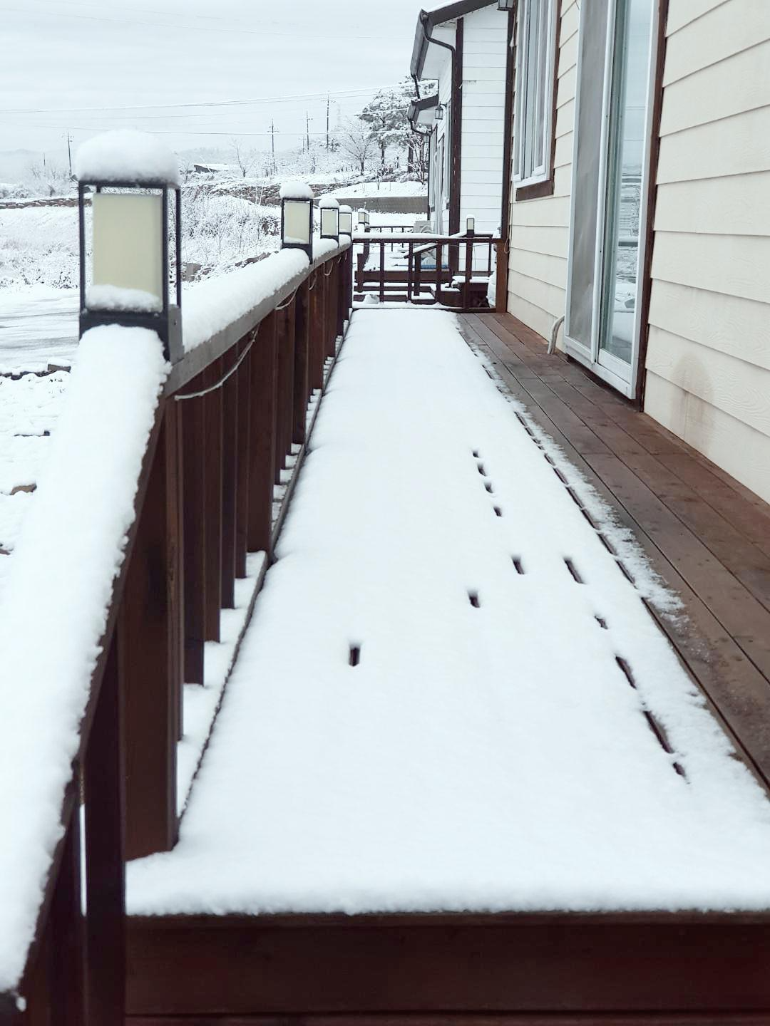 집 주변이 온통 하얀 설국의 풍경 같은 느낌을 받을 수 있다는것도 참 묘한 매력을 느끼게 됩니다.