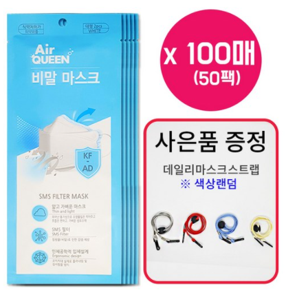 [에어퀸비말차단마스크] 대형 100매 (50팩) / KFAD마스크 / 사은품 마스크 스트랩