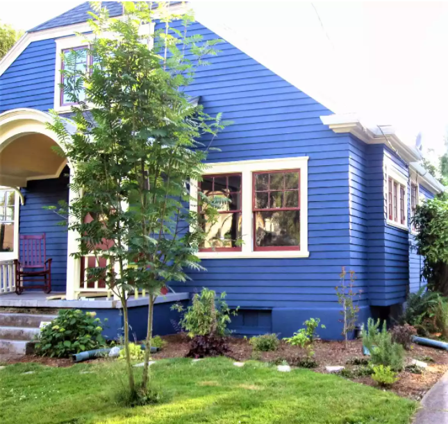 7. 집 외관에서 파란색, 흰색 및 빨간색의 균형을 맞출 수 있습니까? 집의 본체를 위해 더 깊고 어두운 파란색으로, 빨간색도 밝은 빨간색이 아니었지만 파란색처럼 어두운 적갈색으로 음영 처리되었습니다.