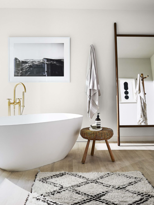 크림색의 스크린은 공간을 부드럽게하고 아르 데코 모양의 거울에 말하면서 현대적인 느낌을 더합니다.