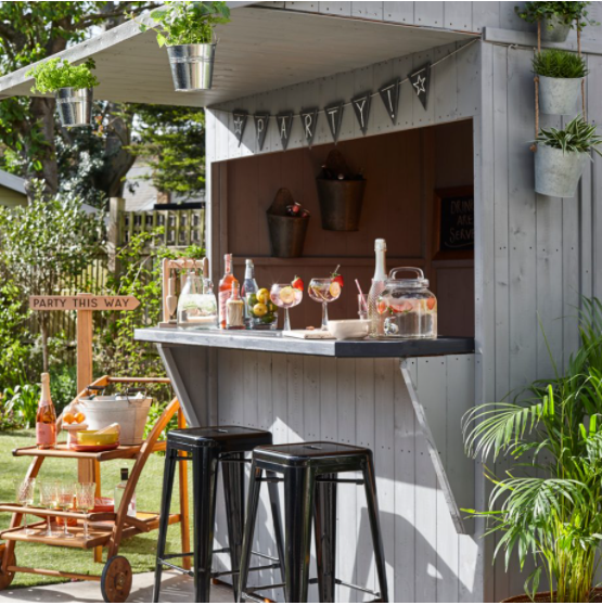 정원에 전용 바를 만들어 즐거운 시간을 보낼 수있는 완벽한 장소를 만드십시오. 이 창고는 겨울에 정원 가구를 보관하고 여름에는 정원 파티와 야외 일몰을 즐길 수 있도록 바로 개방됩니다. 칵테일 시간에 편리하게 지붕에 허브를 걸어 놓으십시오.