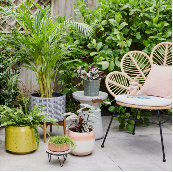 화분을 펼치는 대신 그룹으로 묶어 더 큰 영향을 미칩니다. 다양한 높이로 배열하여 안뜰이나 안뜰 주변에 녹지 주머니를 만듭니다.