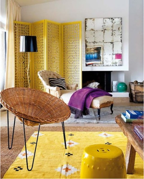 9. 노란색 깔개가있는 초라한 세련된 거실